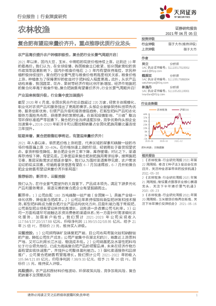 天风证券:农林牧渔行业深度研究:复合肥有望迎来量价齐升,重点推荐优质行业龙头.pdf