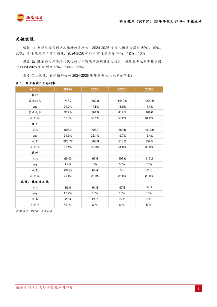 西南证券:明月镜片(301101)-23年报及24年一季报点评:核心单品增长亮眼,产品结构持续优化.pdf