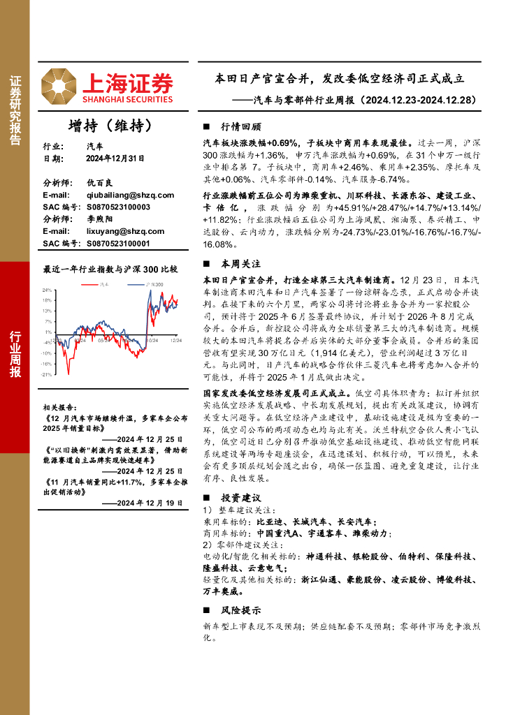 上海证券:汽车与零部件行业周报:本田日产官宣合并,发改委低空经济司正式成立.pdf
