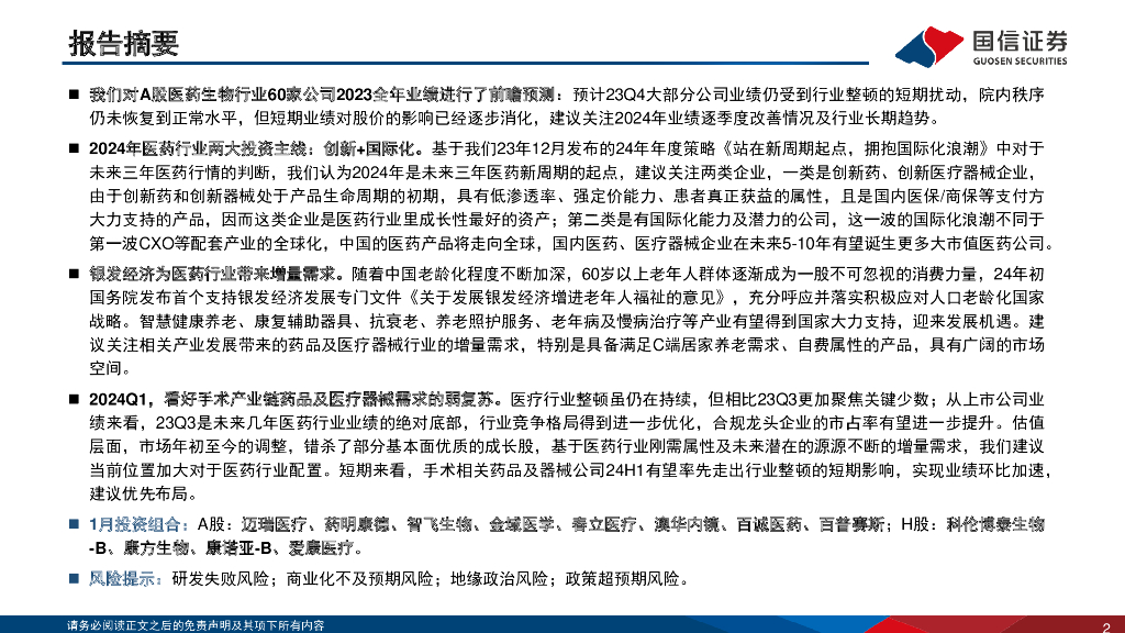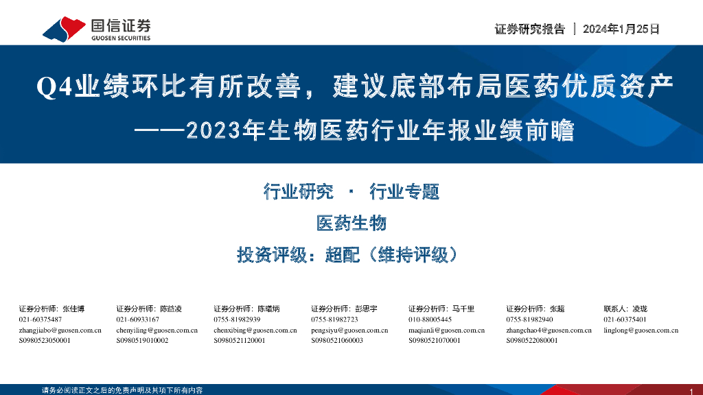 国信证券:2023年生物医药行业年报业绩前瞻:Q4业绩环比有所改善,建议底部布局医药优质资产.pdf