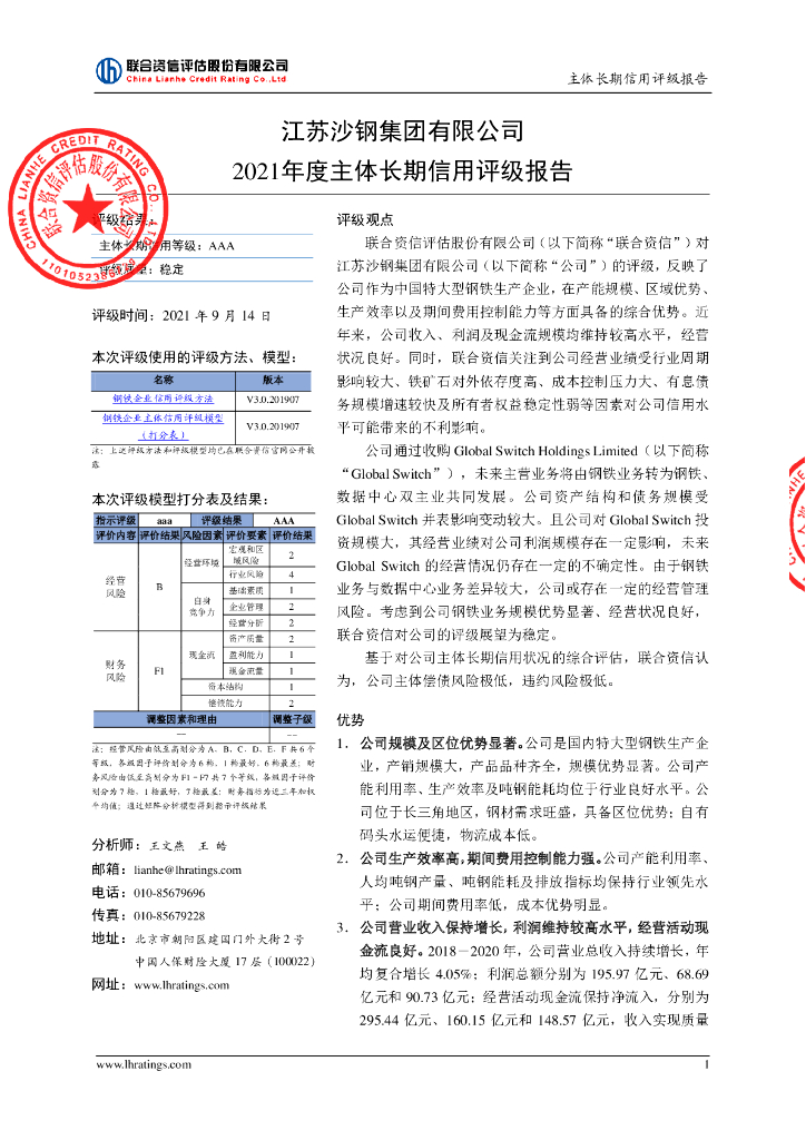联合资信:江苏沙钢集团有限公司2021年度主体信用评级报告.pdf