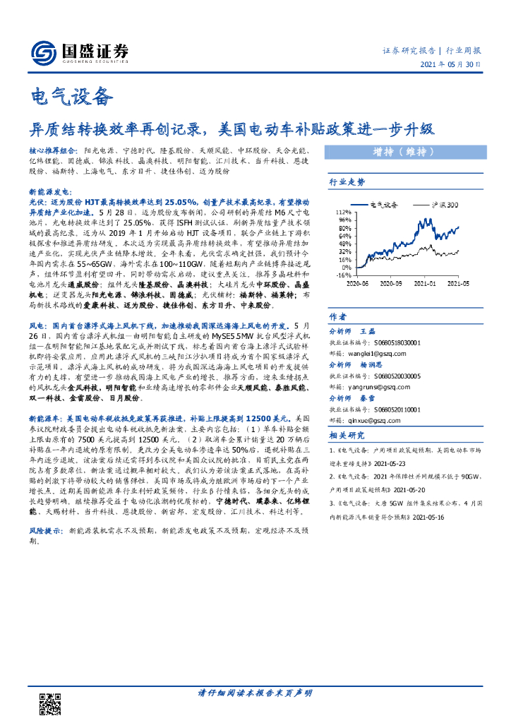 国盛证券:电气设备行业周报:异质结转换效率再创记录,美国电动车补贴政策进一步升级.pdf
