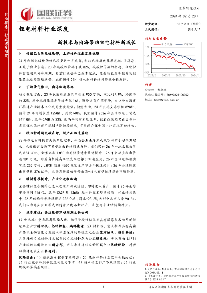 国联证券:锂电材料行业深度:新技术与出海带动锂电材料新成长.pdf