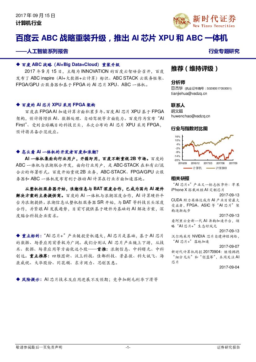 新时代证券:人工智能系列报告:百度云ABC战略重装升级,推出AI芯片XPU和ABC一体机.pdf