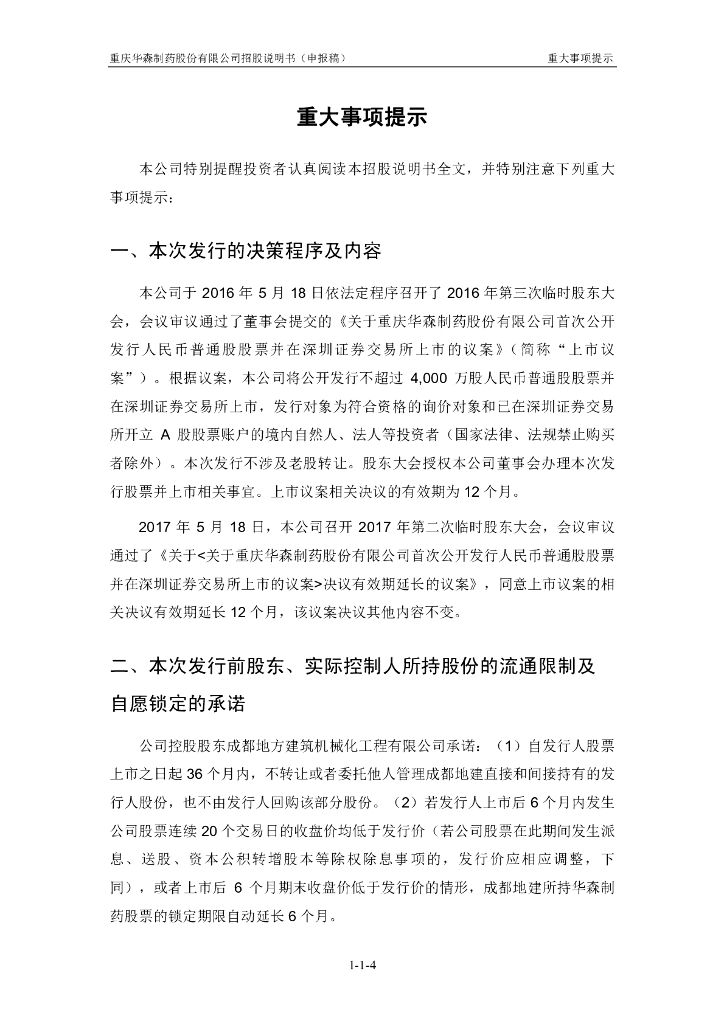 重庆华森制药股份有限公司深交所主板IPO上市招股说明书.pdf