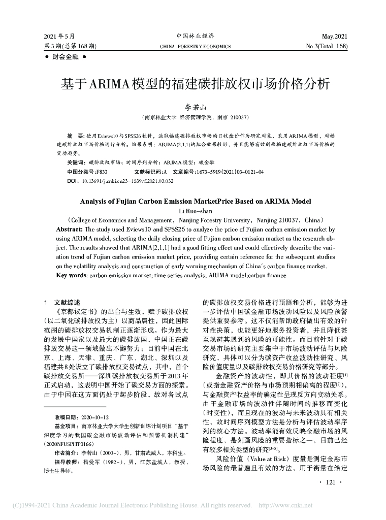 基于ARIMA模型的福建碳排放权市场价格分析.pdf
