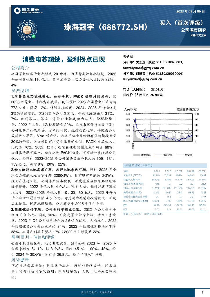 国金证券:珠海冠宇(688772)-消费电芯翘楚,盈利拐点已现.pdf