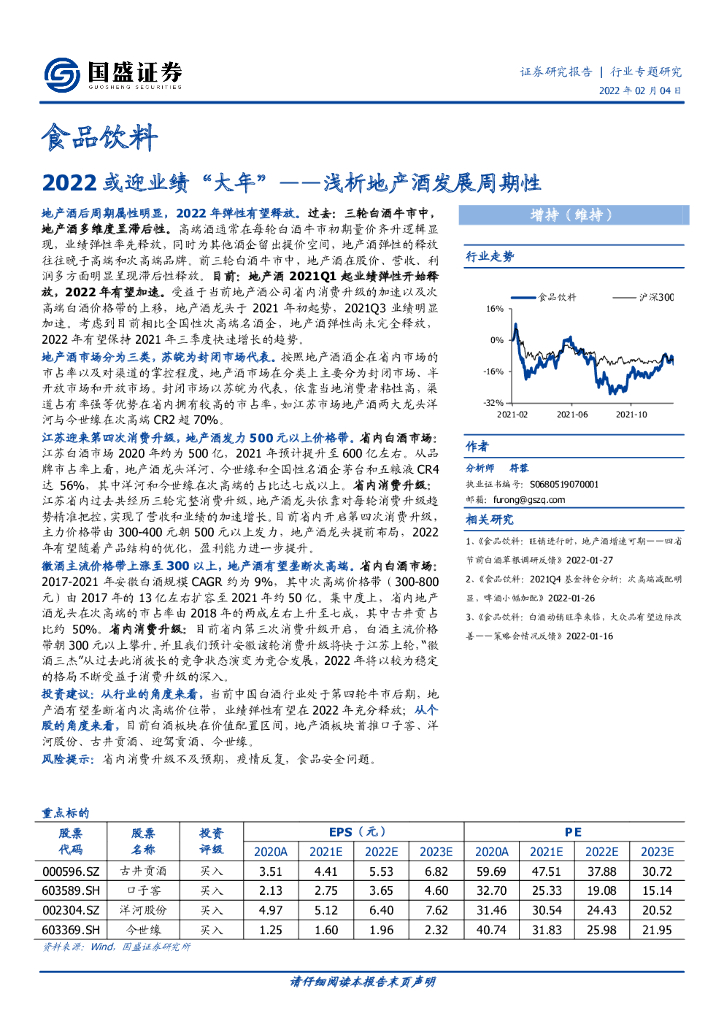 国盛证券:食品饮料行业专题研究:2022或迎业绩“大年”——浅析地产酒发展周期性.pdf