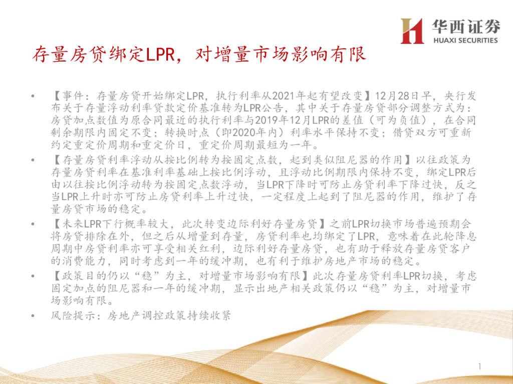 华西证券:房地产:央行存量浮动利率贷款定价基准转为LPR点评:存量房贷绑定LPR,对增量市场影响有限.pdf