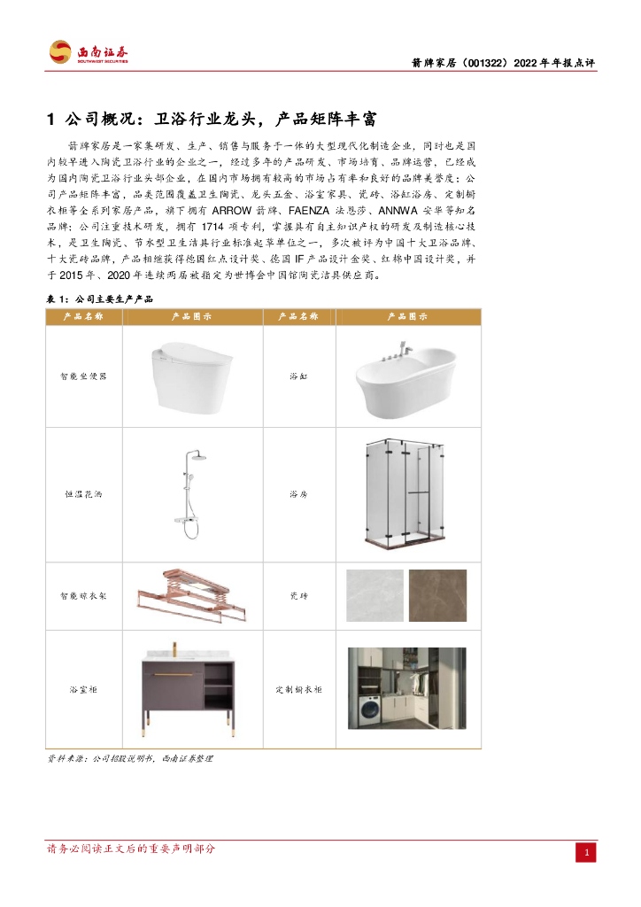 西南证券:箭牌家居(001322)-卫浴行业龙头制造商,智能化产品前景广阔.pdf