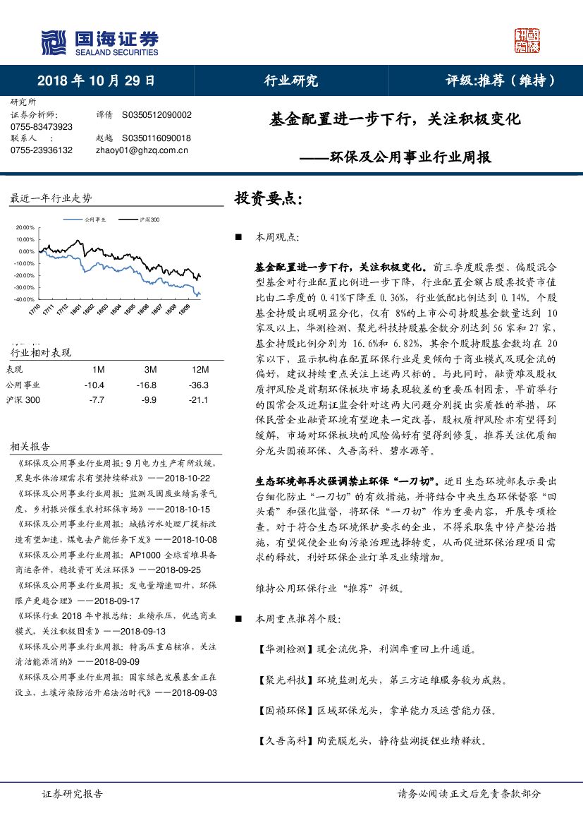 国海证券:环保及公用事业行业周报:基金配置进一步下行,关注积极变化.pdf