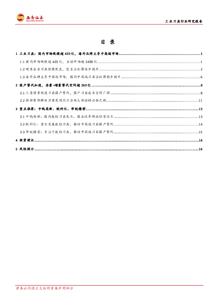 西南证券:工业刀具行业研究报告:存量与增量进口替代,国产刀具成长空间广阔.pdf