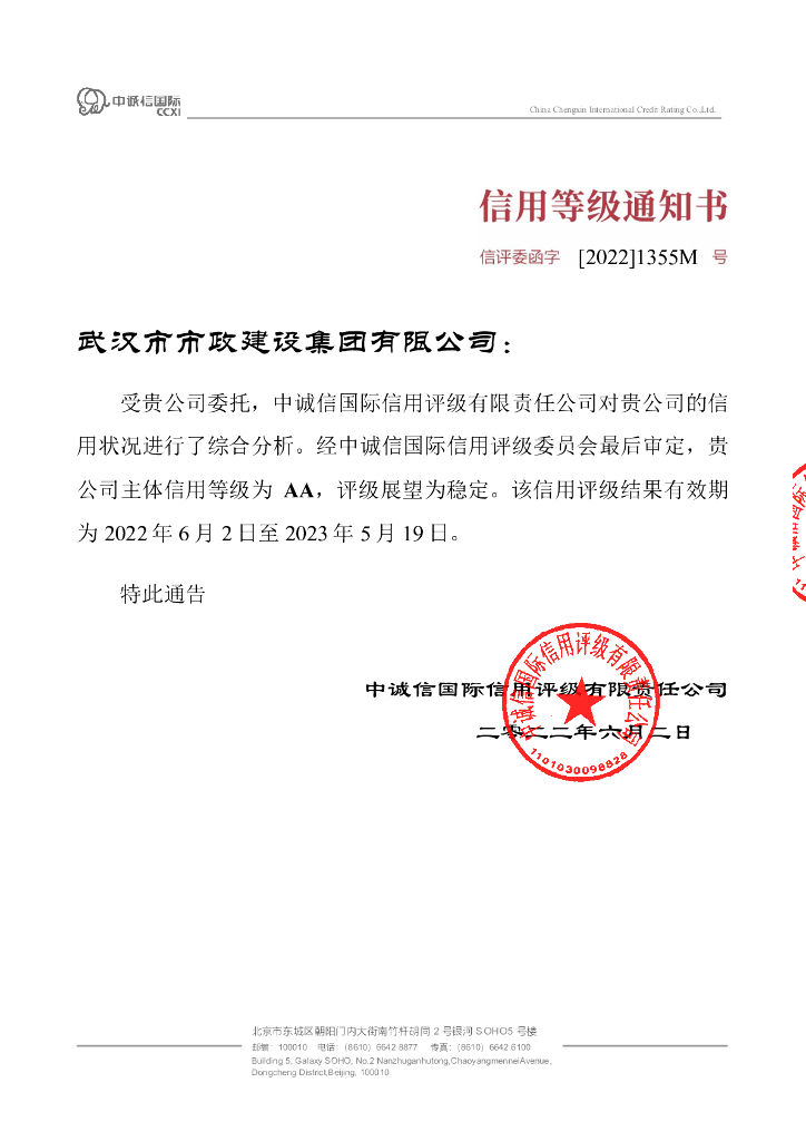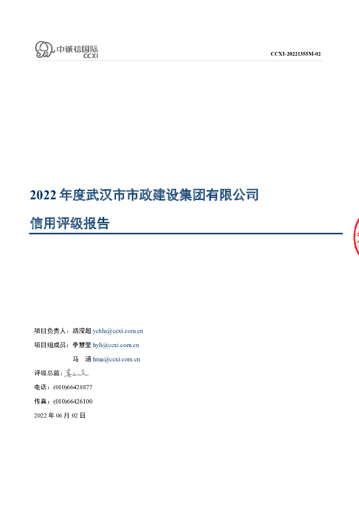 中诚信:武汉市市政建设集团有限公司主体信用评级报告及跟踪评级安排.pdf