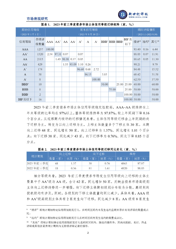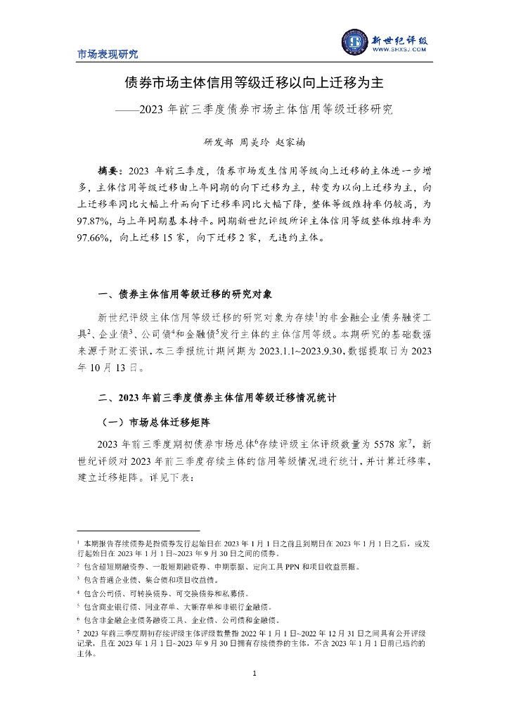 新世纪评级:债券市场主体信用等级迁移以向上迁移为主——2023年前三季度债券市场主体信用等级迁移研究报告.pdf