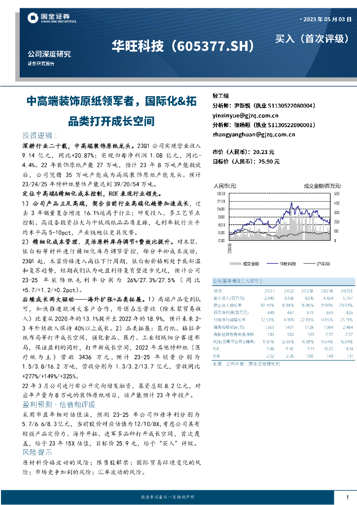 国金证券:华旺科技(605377)-中高端装饰原纸领军者,国际化&拓品类打开成长空间.pdf