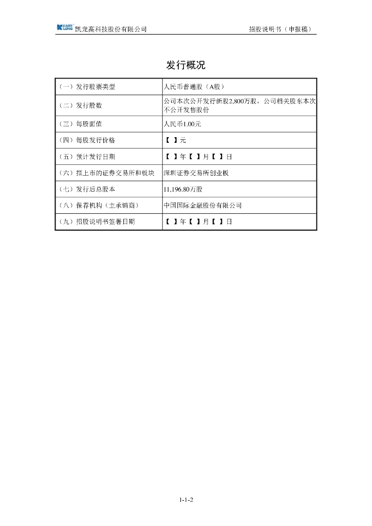 凯龙高科技股份有限公司深交所创业板IPO上市招股说明书.pdf