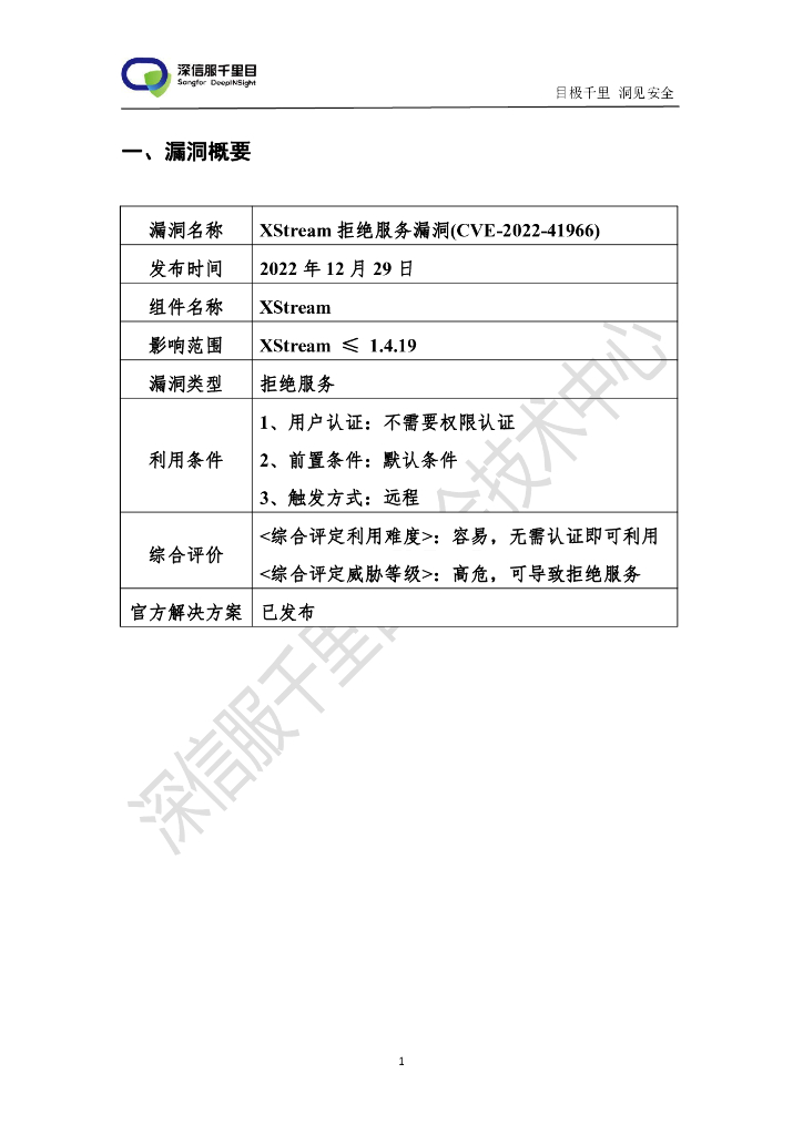 深信服科技:XStream拒绝服务漏洞(CVE-2022-4196).pdf