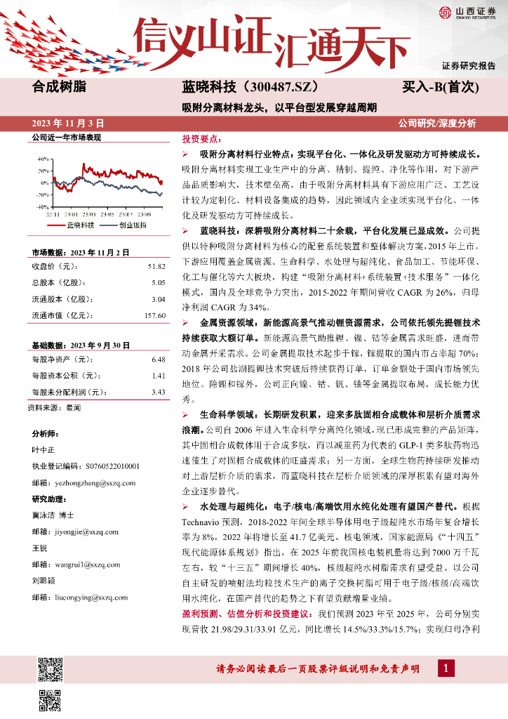 山西证券:蓝晓科技(300487)-吸附分离材料龙头,以平台型发展穿越周期.pdf