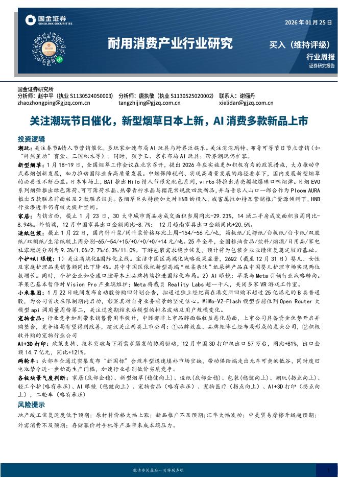 国金证券:耐用消费产业行业研究:关注潮玩节日催化,新型烟草日本上新,AI消费多款新品上市.pdf