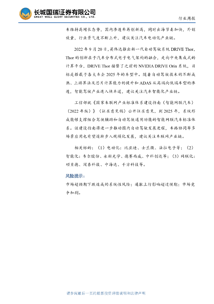 东吴证券:汽车智能化10月投资策略:先发优势稳固,后发发力追赶,继续看好智能化主线!