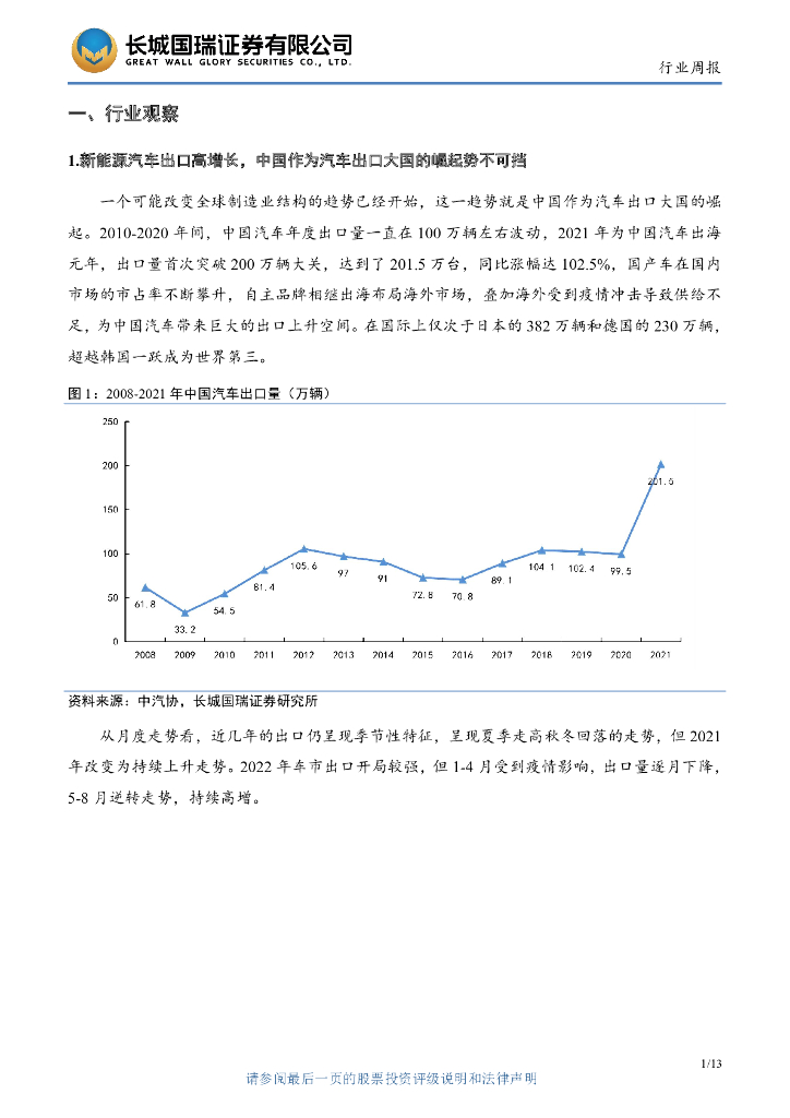 长城国瑞证券:电子行业双周报2022年第8期总第8期:新能源汽车出海放量 外贸空间开启.pdf