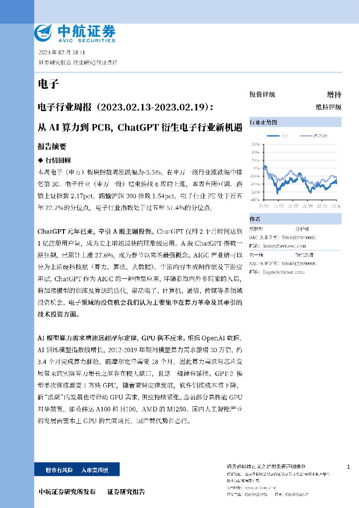 中航证券:电子行业周报:从AI算力到PCB,ChatGPT衍生电子行业新机遇.pdf