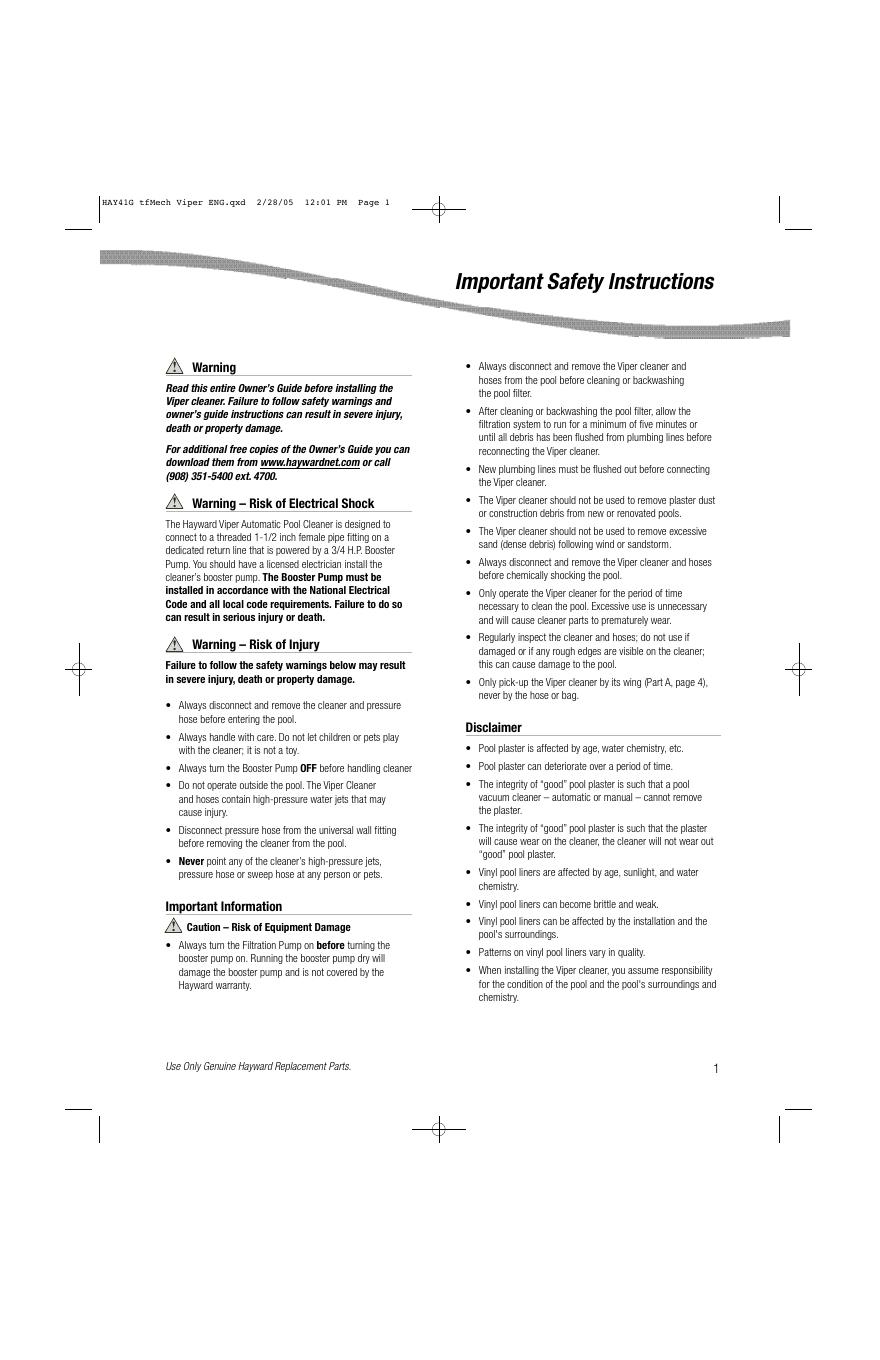 HAYWARD VIPER 5500 High Performance Automatic Pool Cleaner Owner's Guide (1).pdf