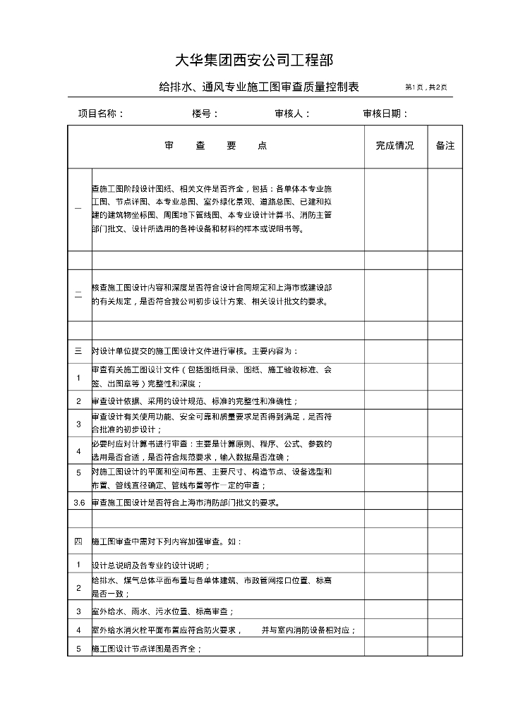**工程给排水、煤气、通风施工图审查质量控制表.pdf