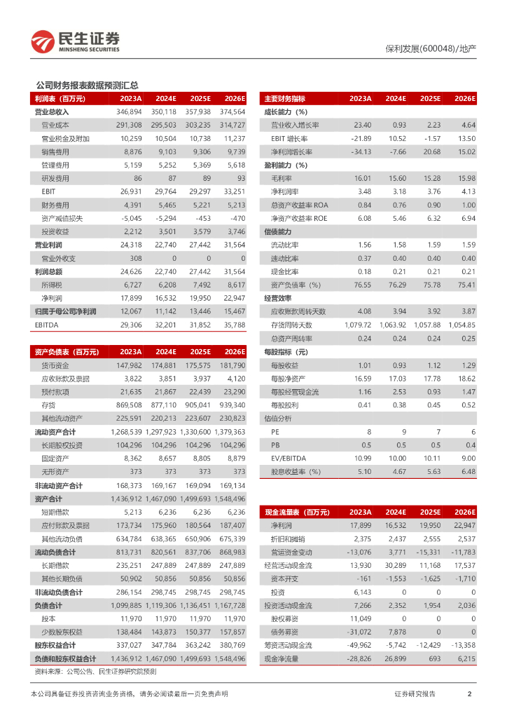 民生证券:保利发展(600048)-2024年半年报点评:营收受结转影响增加,销售金额稳居行业第一.pdf