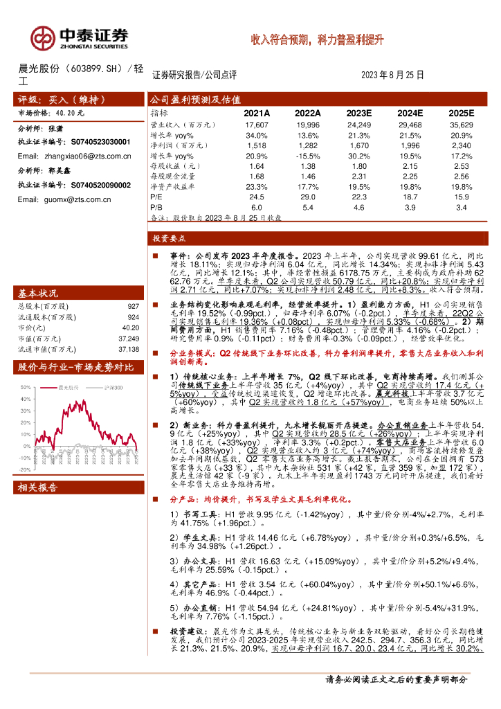 中泰证券:晨光股份(603899)-收入符合预期,科力普盈利提升.pdf