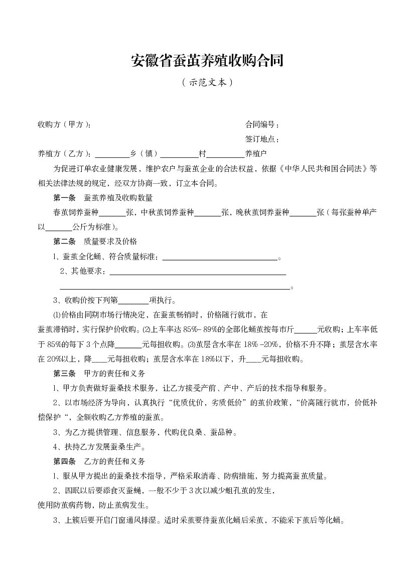 安徽省蚕茧养殖收购合同(示范文本).pdf