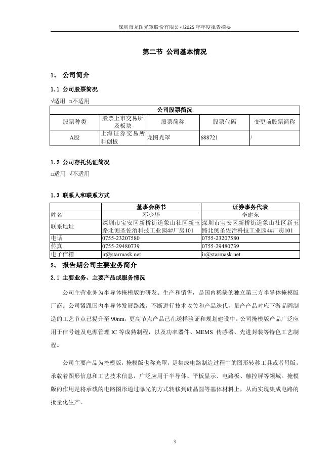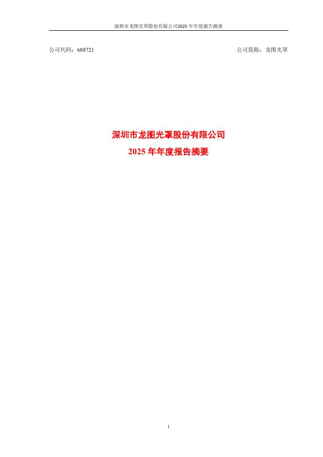688721-龙图光罩:深圳市龙图光罩股份有限公司2025年年度报告摘要.pdf
