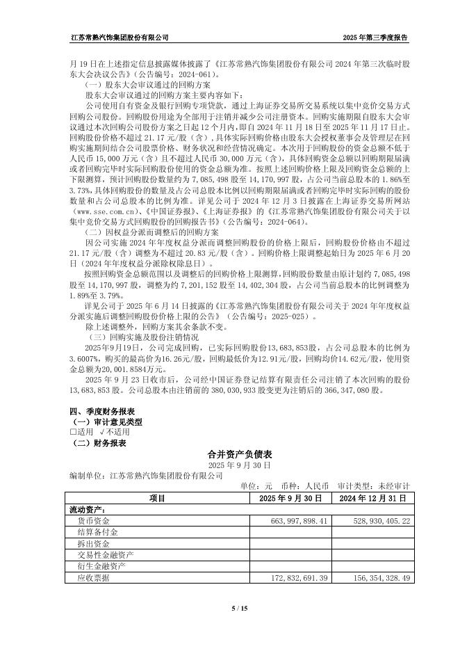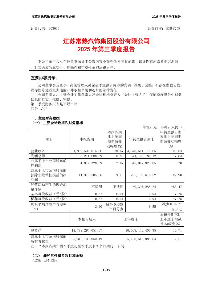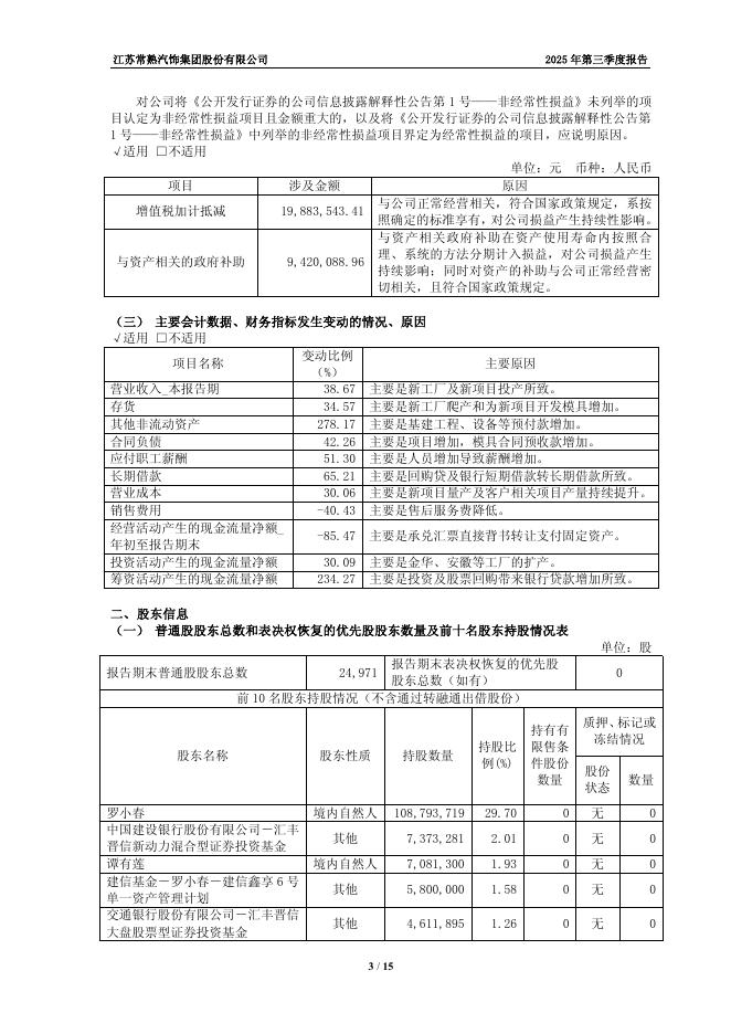 603035-常熟汽饰:江苏常熟汽饰集团股份有限公司2025年第三季度报告.pdf