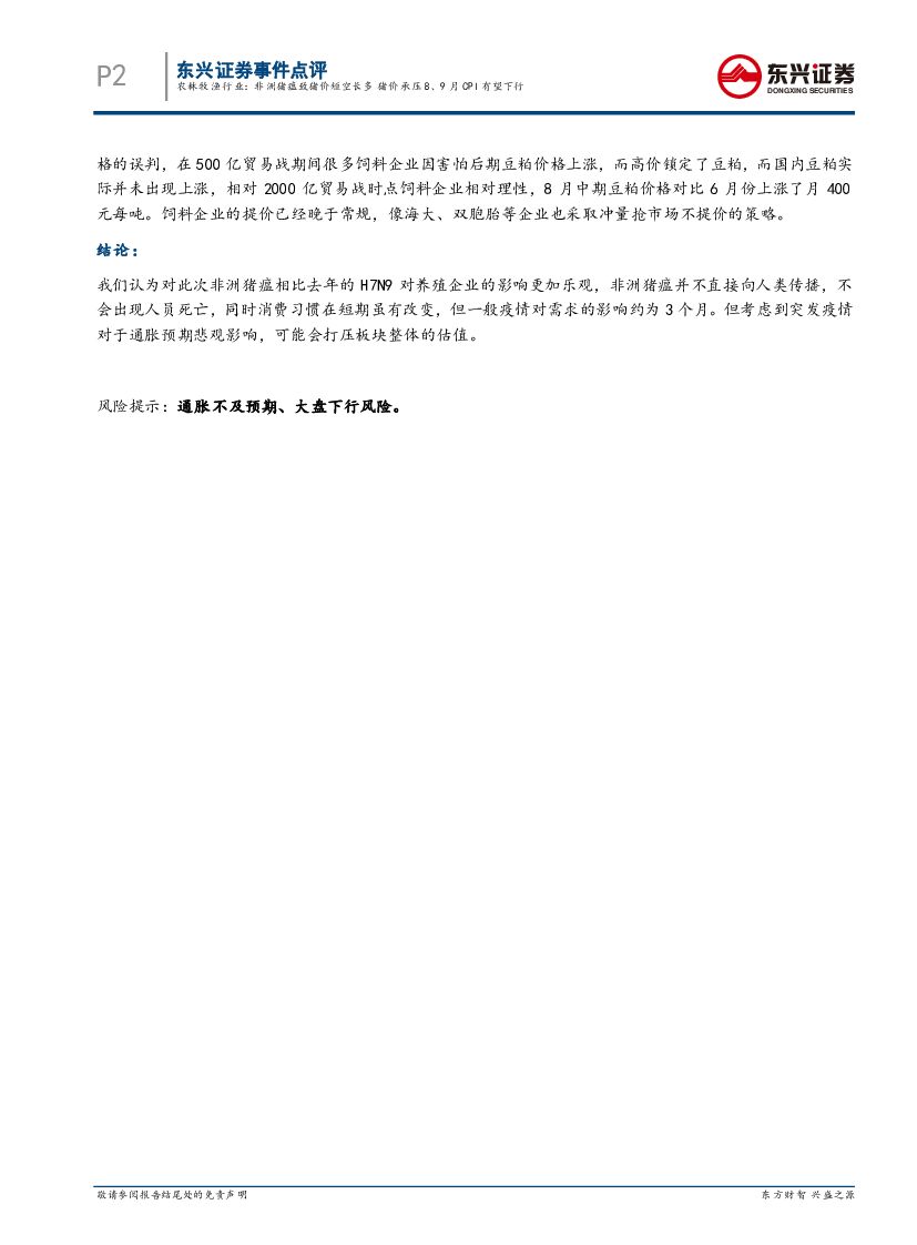 东兴证券:农林牧渔行业事件点评:非洲猪瘟致猪价短空长多猪价承压8、9月CPI有望下行.pdf