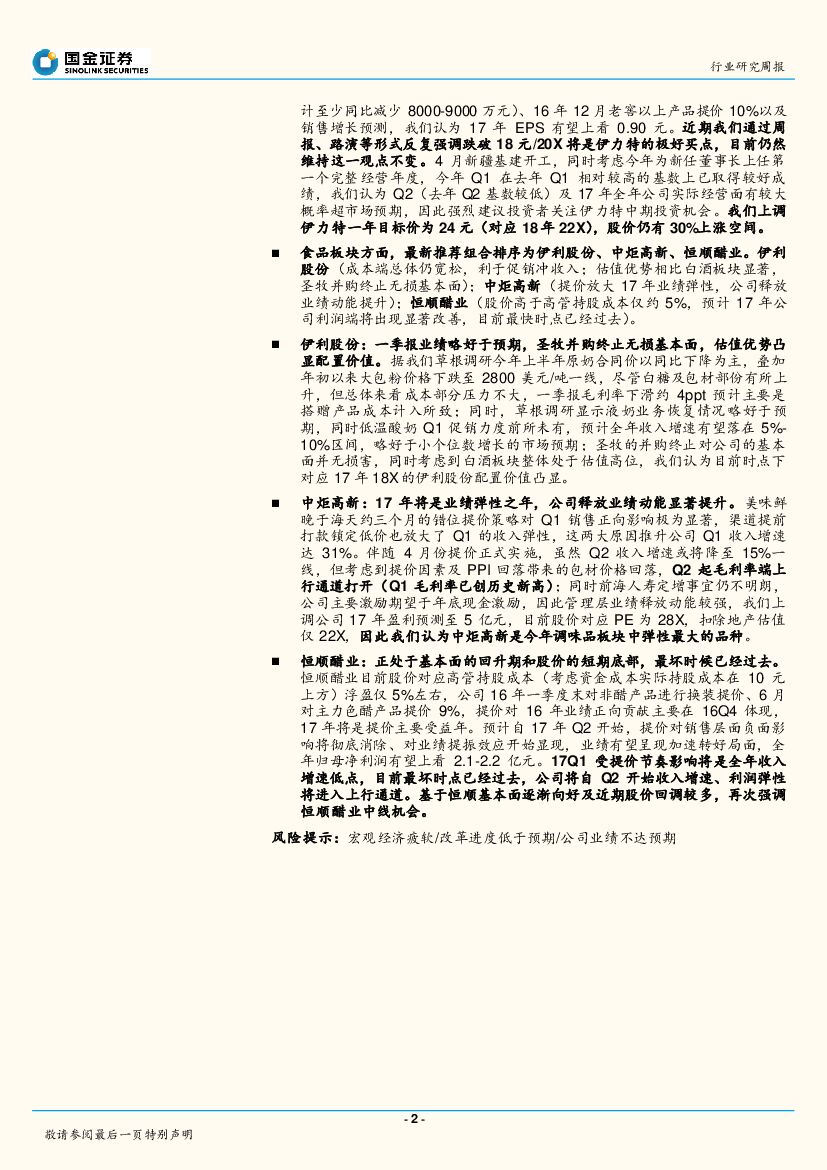 国金证券:食品饮料行业研究周报:业绩兑现期后行业淡季预计白酒板块走出分化行情,坚定持有一线白酒.pdf