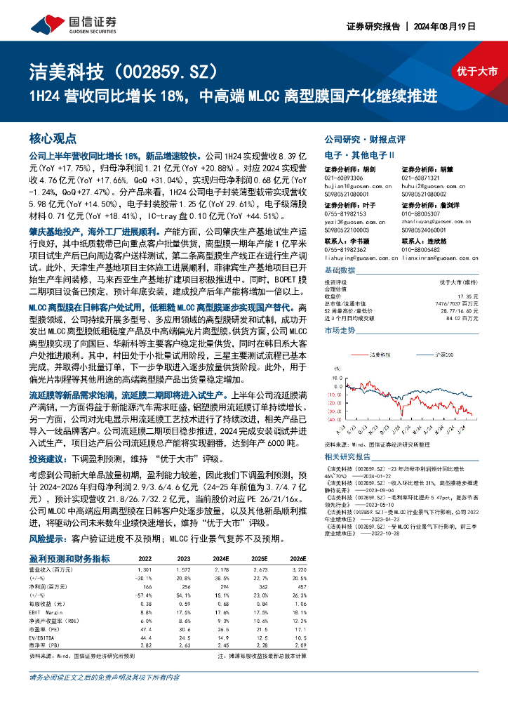 国信证券:洁美科技(002859)-1H24营收同比增长18%,中高端MLCC离型膜国产化继续推进.pdf