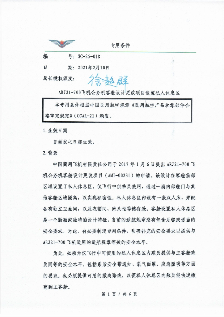 ARJ21-700飞机公务机客舱设计更改项目设置私人休息区.pdf