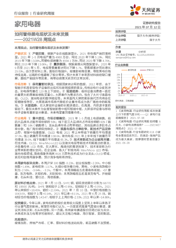 天风证券:家用电器2021W28周观点:如何看待黑电现状及未来发展.pdf
