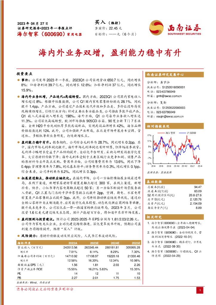 西南证券:海尔智家(600690)-海内外业务双增,盈利能力稳中有升.pdf