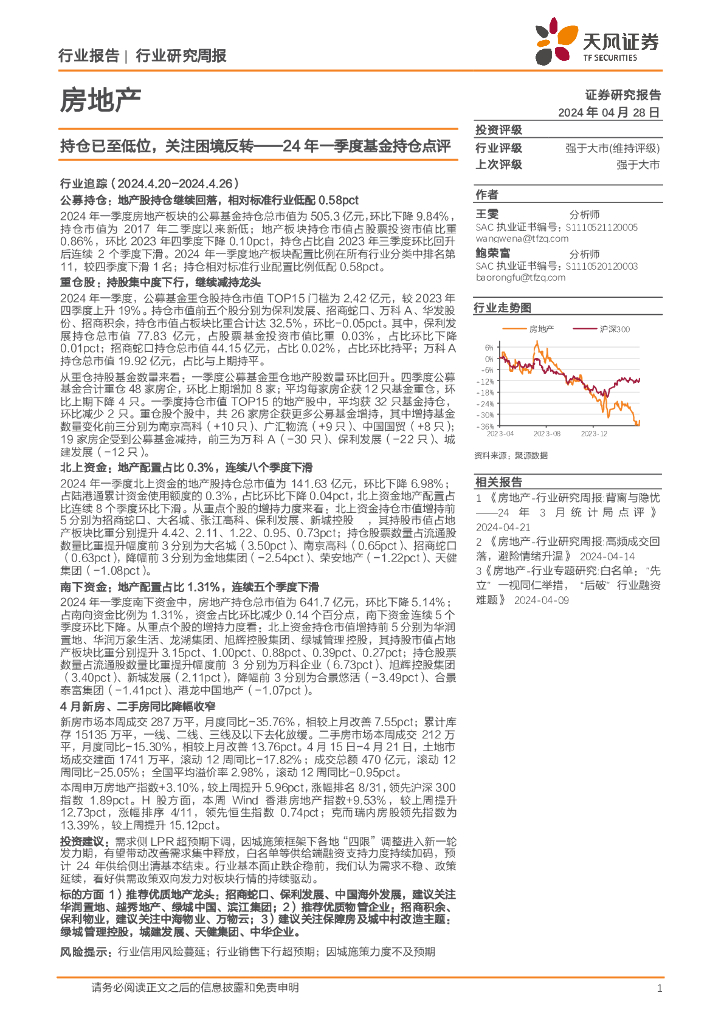 天风证券:房地产24年一季度基金持仓点评:持仓已至低位,关注困境反转.pdf