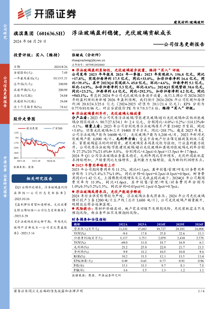 开源证券:旗滨集团(601636)-公司信息更新报告:浮法玻璃盈利稳健,光伏玻璃贡献成长.pdf