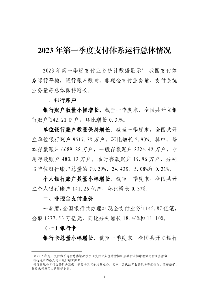 中国人民银行:2023年第一季度支付体系运行总体情况.pdf