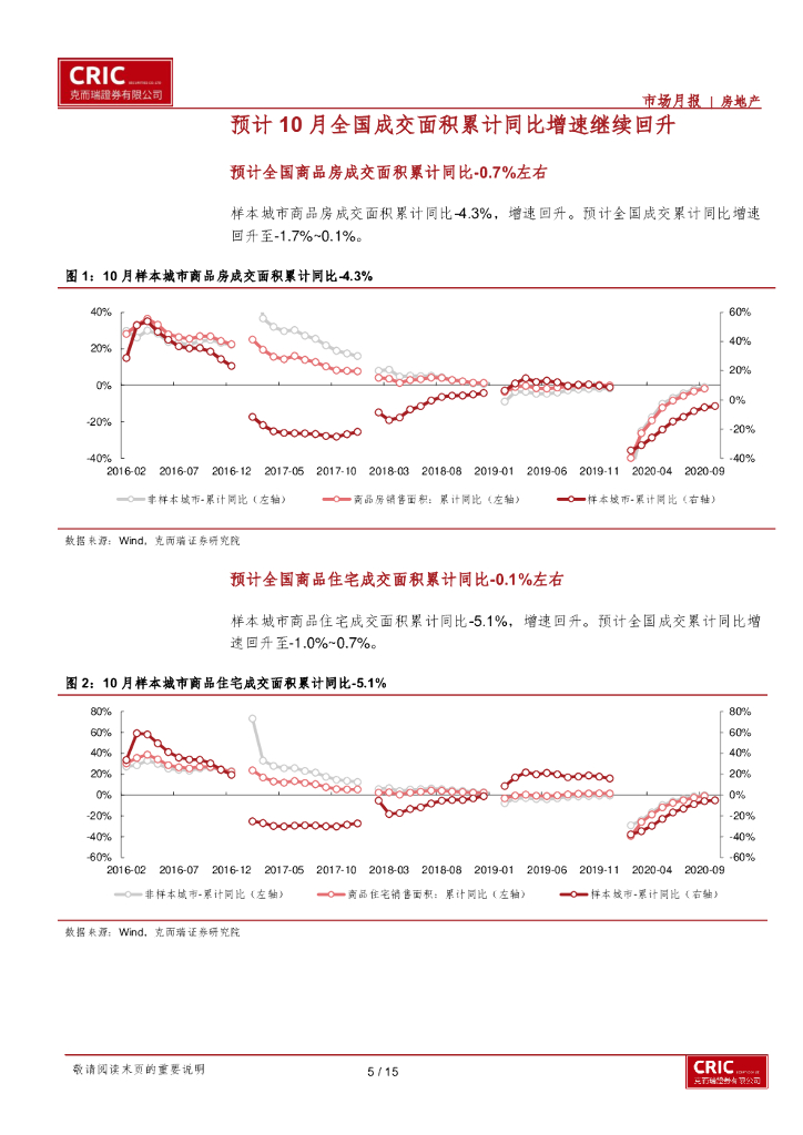 克而瑞证券:全国10月成交面积及市场跟踪:10月全国成交累计同比继续回温,土地市场一线城市表现突出,其他能级城市供求明显降温.pdf