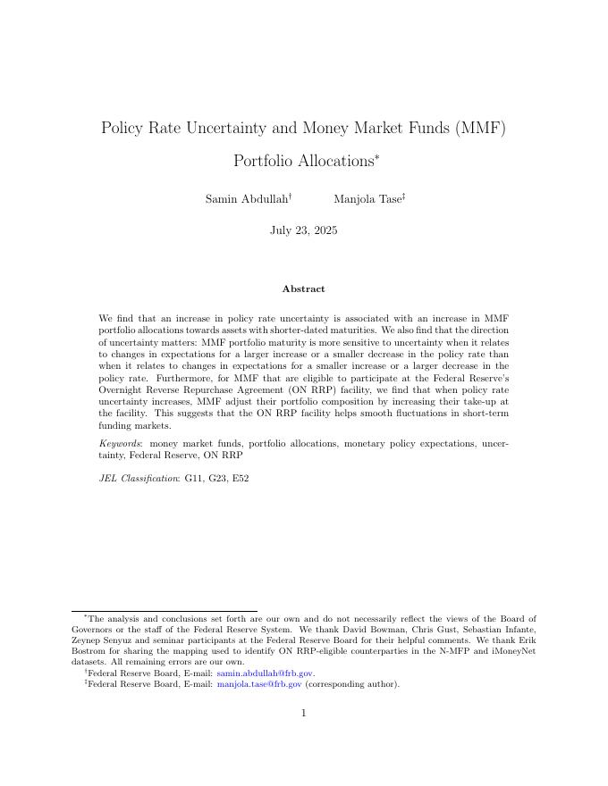 美联储:政策利率不确定性与货币市场基金(MMF)投资组合配置(英文版).pdf