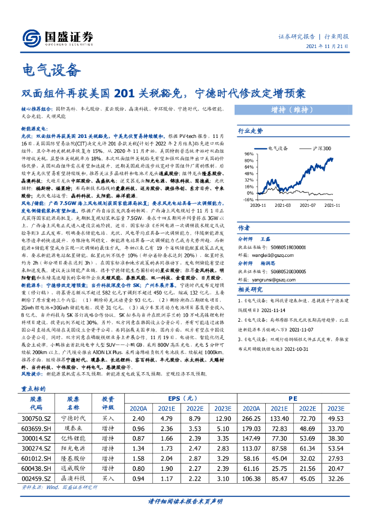 国盛证券:电气设备行业周报:双面组件再获美国201关税豁免,宁德时代修改定增预案.pdf
