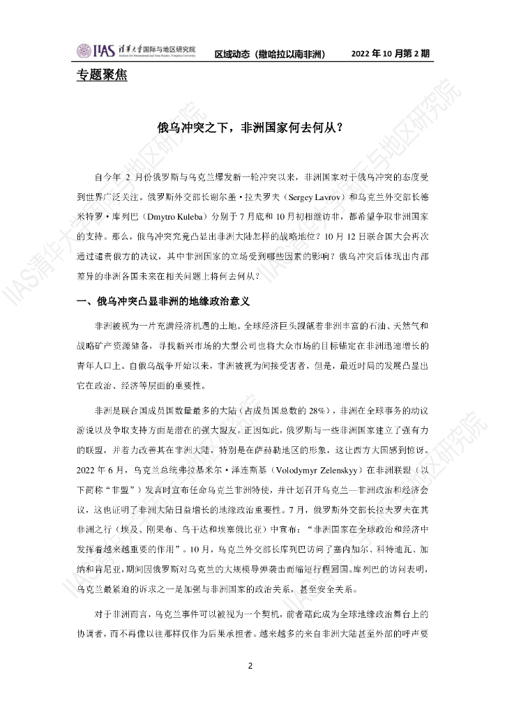 清华大学国际与地区研究院:撒哈拉以南非洲地区《区域动态》2022年10月第2期.pdf
