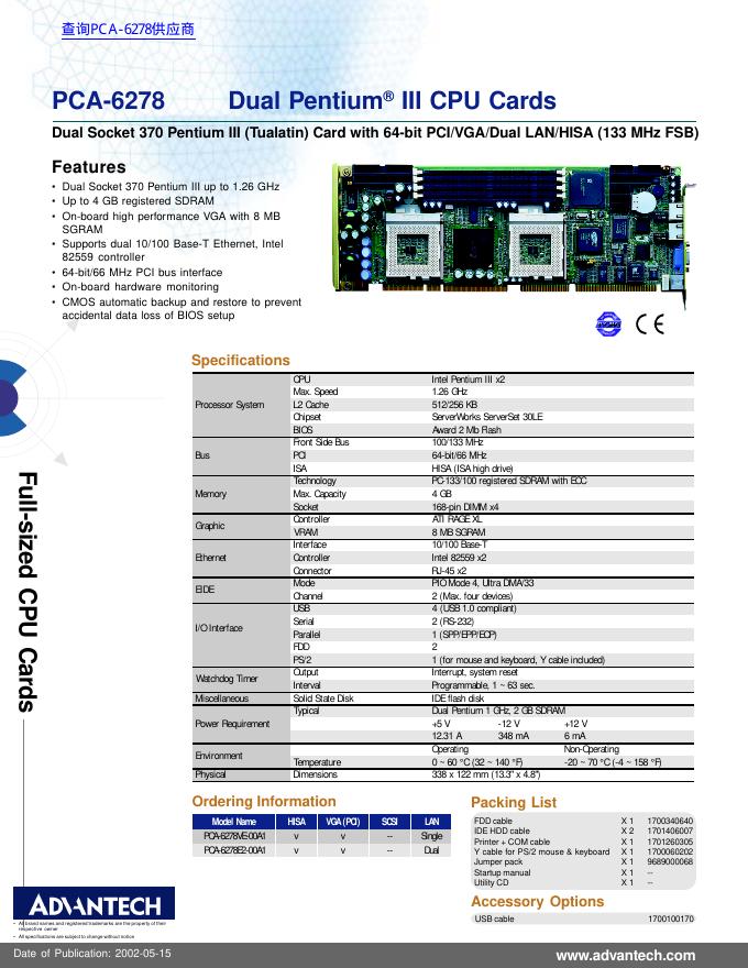 PCA-6278 Dual Pentium III CPU Cards 数据手册.pdf