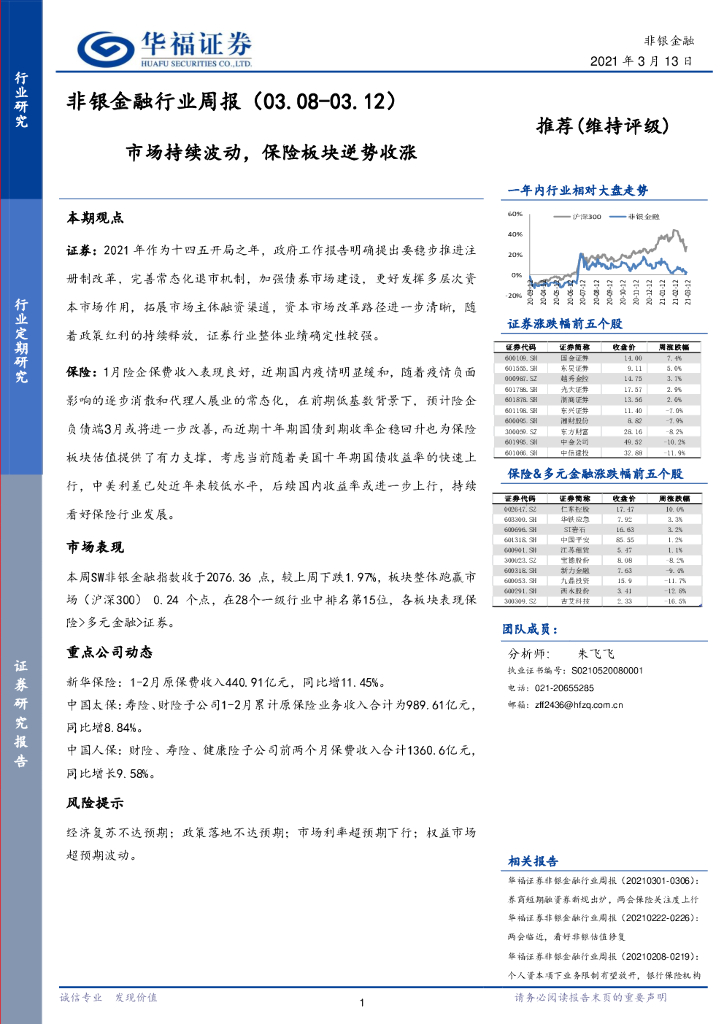 华福证券:非银金融行业周报:市场持续波动,保险板块逆势收涨.pdf