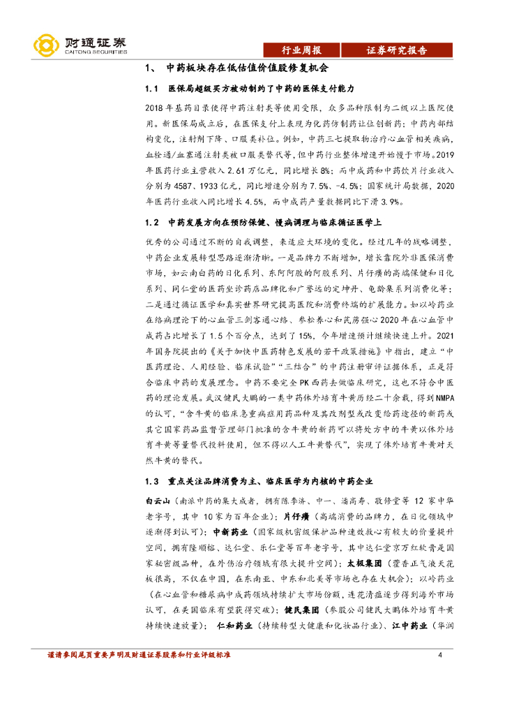 财通证券:医药生物行业周报:“药”倾听市场的声音第一百一十九期-中药板块存在低估值价值股修复机会.pdf
