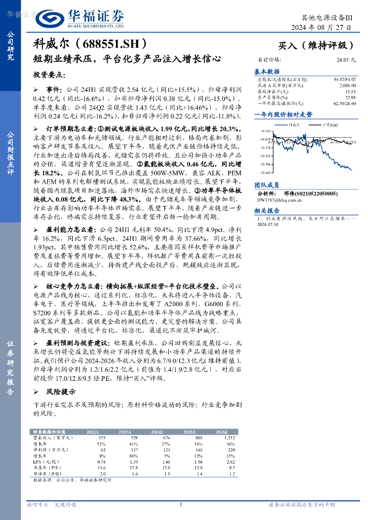华福证券:科威尔(688551)-短期业绩承压,平台化多产品注入增长信心.pdf